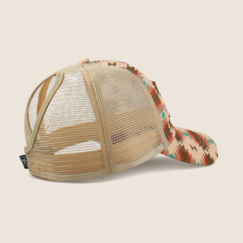 A brightly coloured cap is a summertime staple, and this Southwestern-styled one stands out with its western motif. Finished with a statement logo patch and featuring a ponytail opening at back.