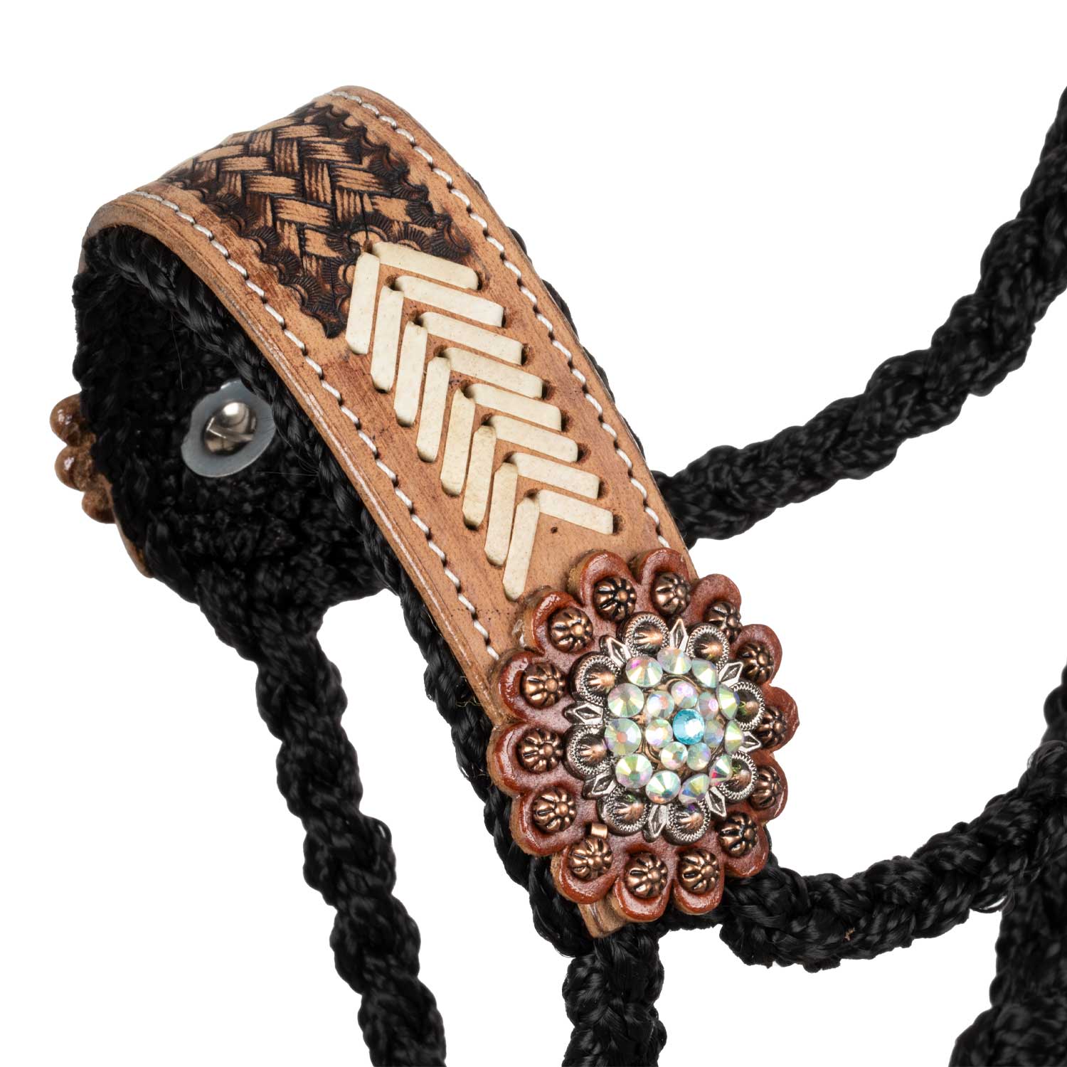 Pool's rope halter with hand worked leather insert PLH03004